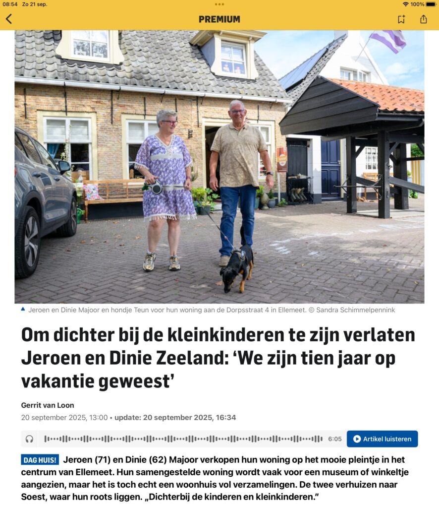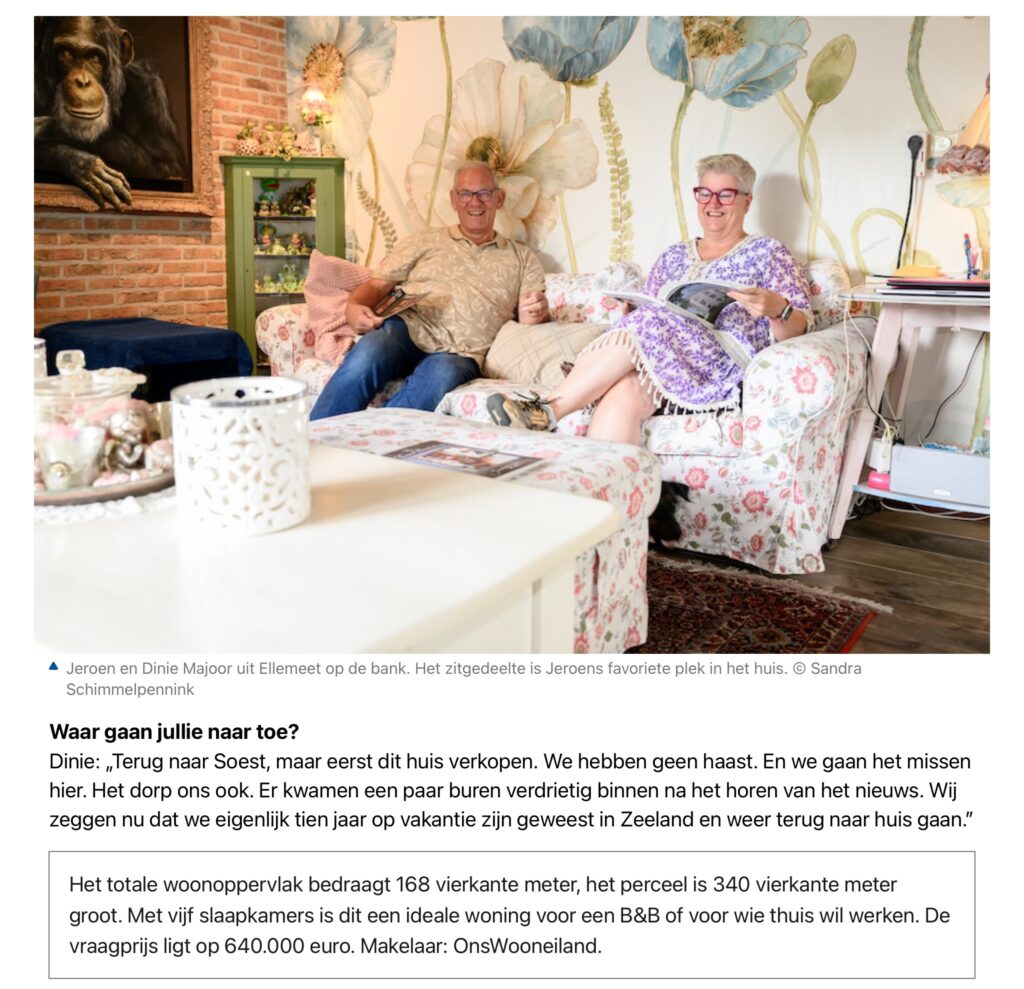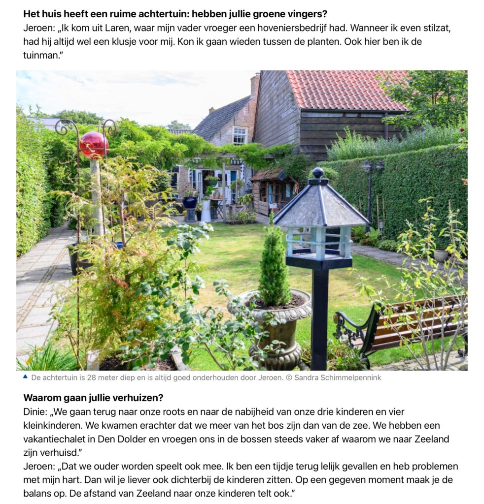 Na al die mooie jaren in Ellemeet Zeeland, verhuizen Dinie en Jeroen terug naar Soest.